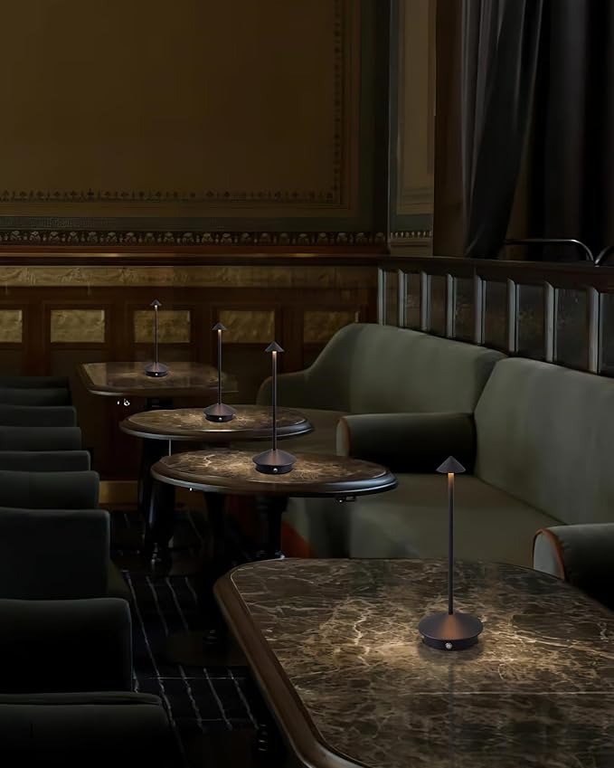 Modern Cordless Table Lamp Set of 2, Portable LED Desk Lamps, 5000mAh Rechargeable Battery Operated Lighting for Bedroom Dining Room Restaurant Coffee Shop Camping Night Light (Black)