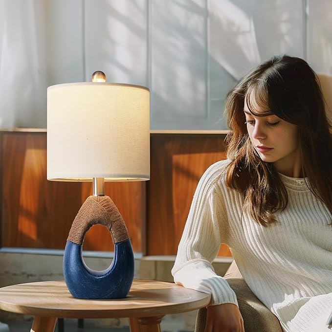 OYEARS 19" Boho Lamp for Bedroom, Bedside for Nightstands, Table Lamp for Living Room,Suitable for Small Space,Coastal Farmhouse, End Table, Rattan Nautical Beach Style, Blue,1 Pack