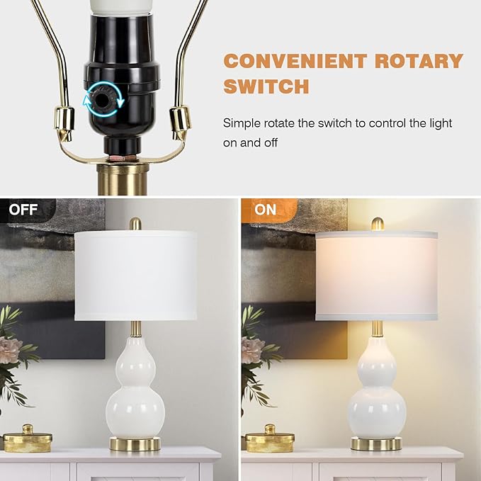 Double Gourd Ceramic Table Lamps Set of 2, Modern White Bedside Lamps for Night Stand, Contemporary Nightstand Lamps for Bedroom Living Room (Bulb Included)
