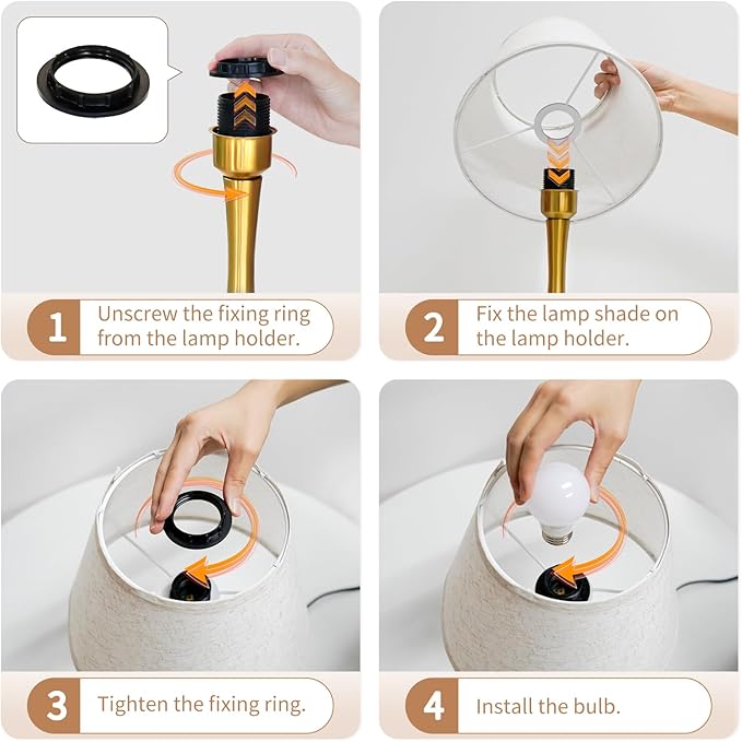 ONEWISH Touch Table Lamp for Bedroom, 3-Way Dimmable Gold Bedside Lamps for Nightstand with Fabric Shade, Desk Lamp for Kids Reading, Home Office