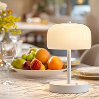 Oneach Portable Cordless Table Lamp, Rechargeable Battery Powered Lamp with Opal Glass Shade, 3-Way Dimmable LED Touch Mushroom Table Lamps for Bedroom, Bedside, Living Room, Dining Room, Patio, White