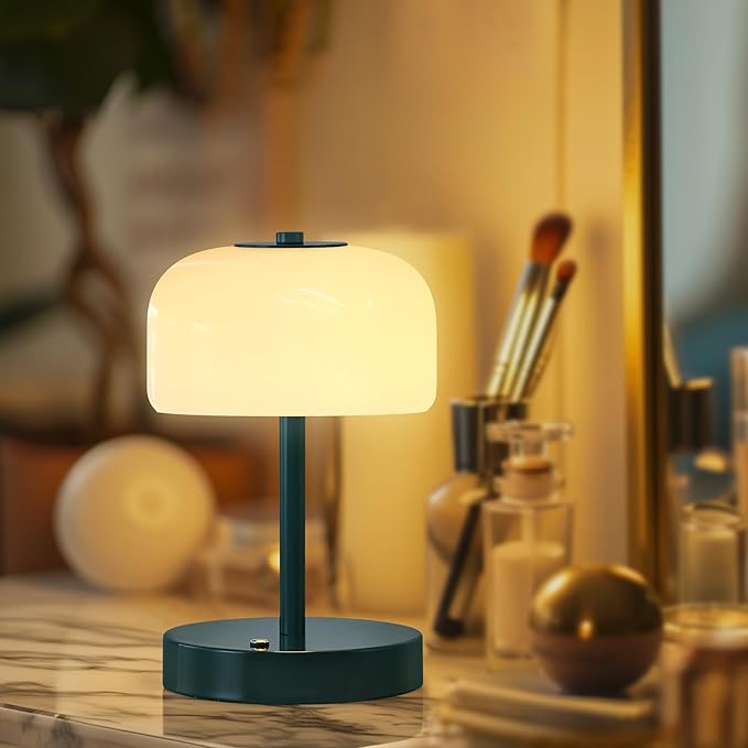 Oneach Portable Cordless Table Lamp, Rechargeable Battery Powered Lamp with Opal Glass Shade, 3-Way Dimmable LED Touch Mushroom Table Lamp for Bedroom, Bedside, Living Room, Dining Room, Patio, Blue