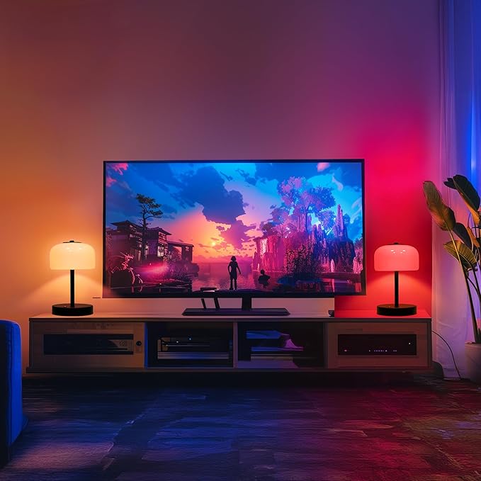 Oneach 9" Cordless Table Lamp, Portable Rechargeable Battery Powered Lamp, 3 Color Temperatures and 7 RGB Colors, Small Touch Mushroom Lamps for Bedroom Restaurant Cafe Bar Patio