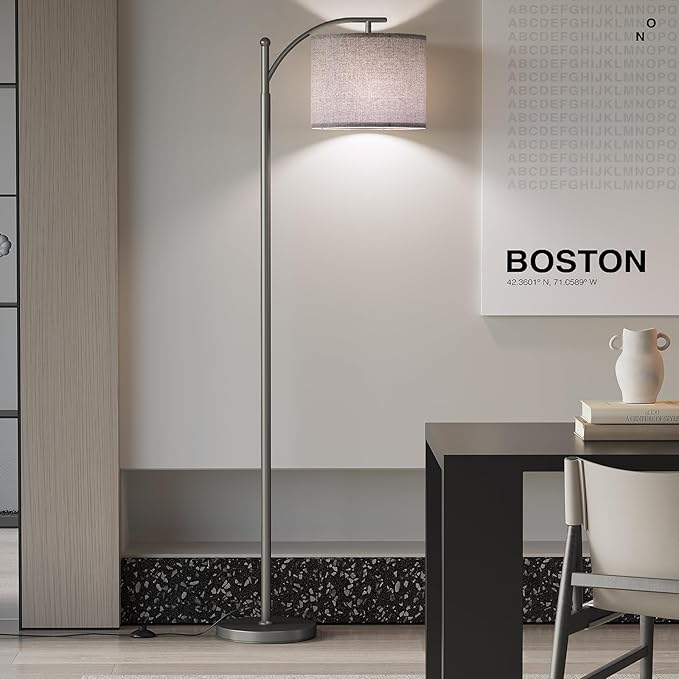 SUNMORY Arc Floor Lamp,Modern Floor Lamp with 9W 3 Color Temperatures Bulb,Metal Standing Lamps with Adjustable Hanging Lampshade,Tall Floor Lamps for Living Room,Bedroom,Office