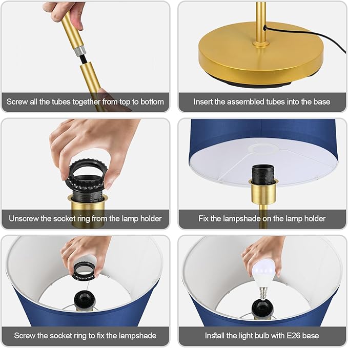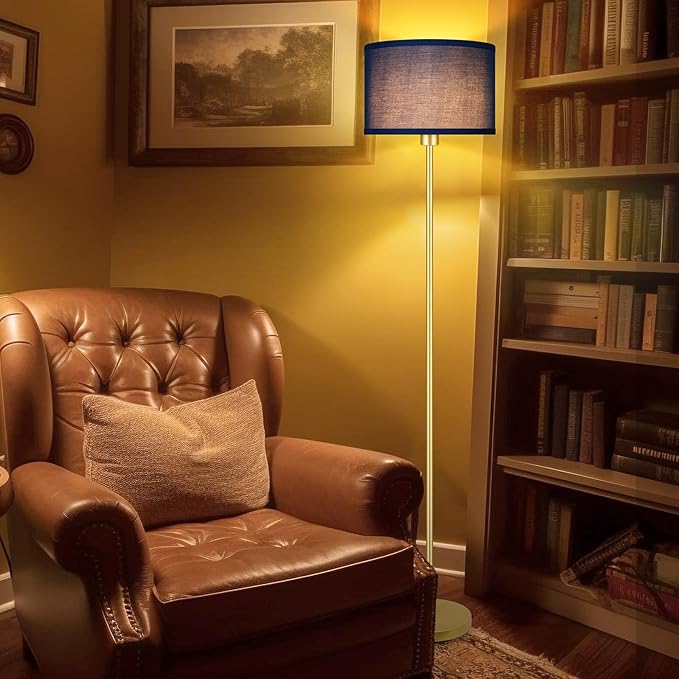 Floor Lamp Blue, Standing Lamp, 58" Tall Floor Lamp with Lampshade, Foot Pedal Switch, Modern Simple Floor Lamps for Living Room/Bedroom/Den/Classroom, Gold Lamp for Boys' Gift(Without Bulb)