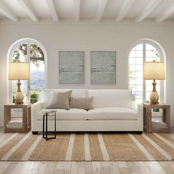 Table Lamp for Bedroom Set of 2 - Bedside Table Lamps with 3 Color Temperatures - Boho Rattan Lamps for Nightstand with USB A+C Charging Ports Farmhouse Living Room Lamp Bulb Included
