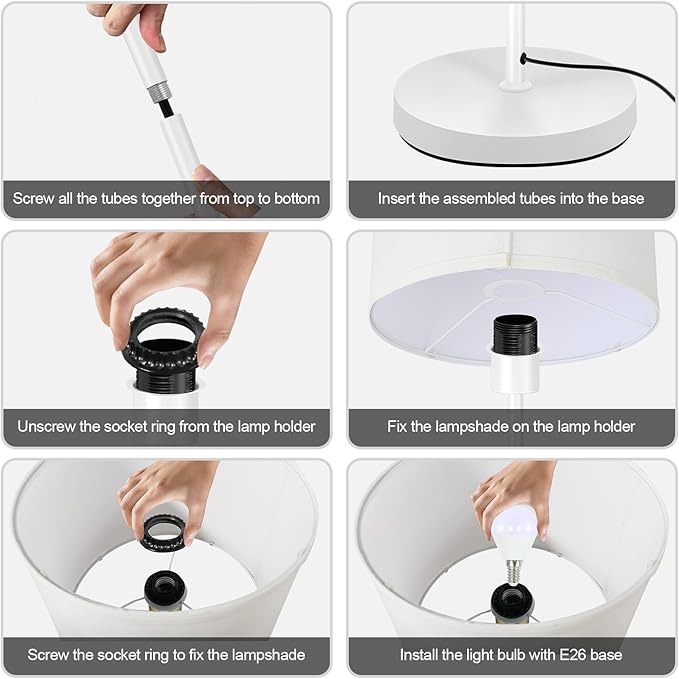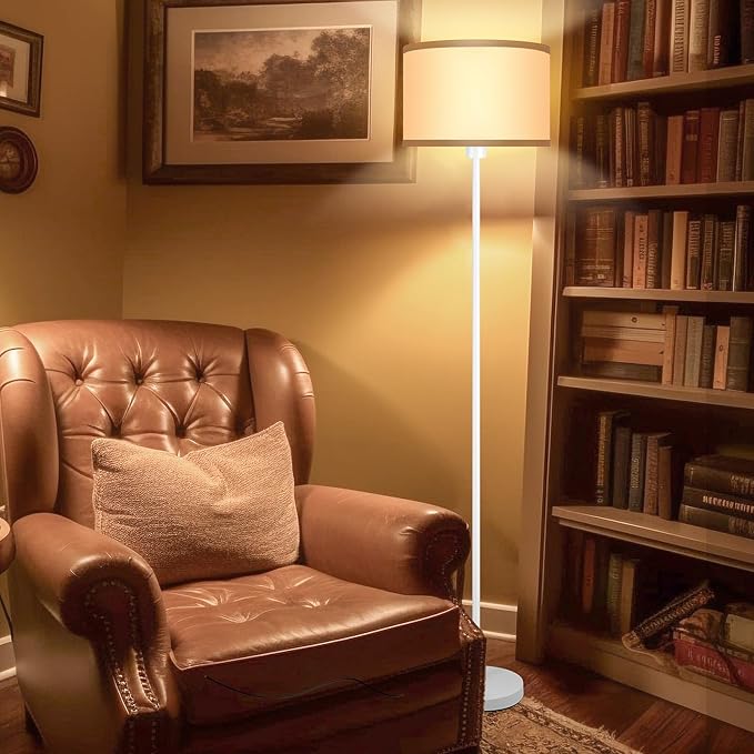 Floor Lamp White, Standing Lamp, 58" Tall Floor Lamp with Lampshade, Foot Pedal Switch, Modern Small Floor Lamps for Living Room/Bedroom/Classroom/Kids Room, White Lamp for Girls' Gift(Without Bulb)