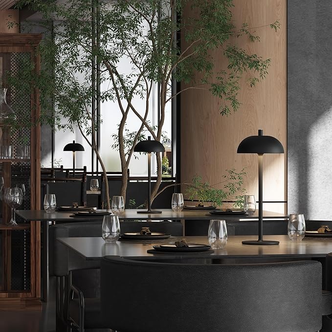 2 Pack Rechargeable Cordless Table Lamp - 5000mAh Battery Powered Lamp, 3 Color Stepless Dimming Portable LED Table Light for Restaurant, Patio, Home, Dinner.(Black)