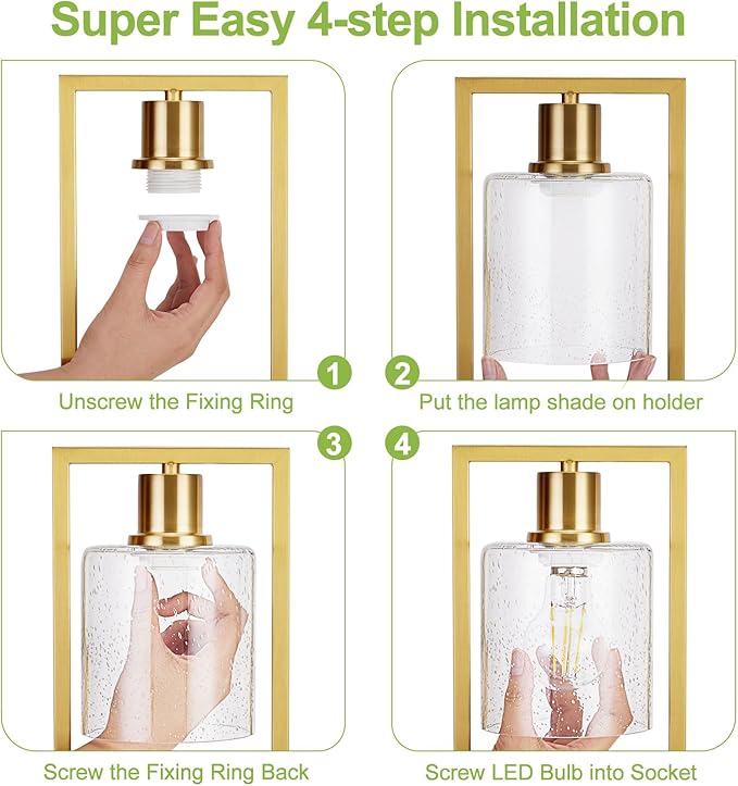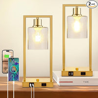 16" Set of 2 Gold Industrial Table Lamps with USB A+C Charging Ports and AC Outlet, Fully Stepless Dimmable Bedside Lamps with Seeded Glass Shade for Bedroom Living Room Office, LED Bulbs Included