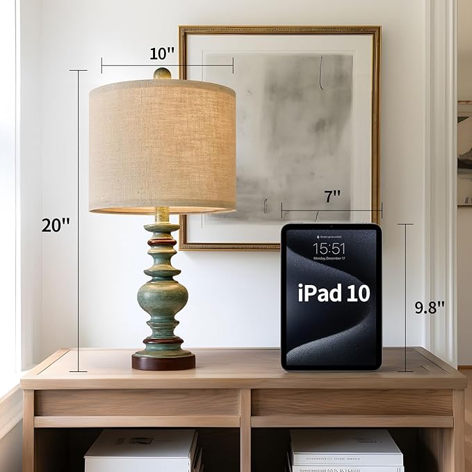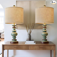 BOBOMOMO 20" Farmhouse Lamps for Bedrooms Set of 2, Retro Side Table Lamps Bedside Lamp for Side Nightstand Living Room(Suitable for Decorating Small Areas)