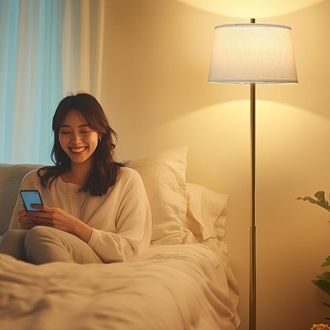 Oneach 61" Floor Lamp for Living Room, Gold Modern Standing Lamp with White Linen Shade, Brass Tall Pole Light with Rotary Switch for Bedroom, Office, Reading Room