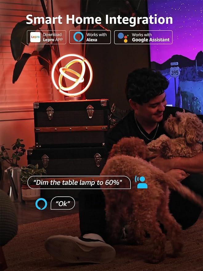 Lepro TB1 AI Smart Table Lamp, RGB+IC Addressable Color Changing Desk Light Alexa Google Enable, Music Sync Unique Cool LED Lamps for Game Room Decor Ambient Lighting, APP Control No Remote, 2.4 GHz