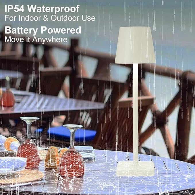 2 Pack Rechargeable Cordless Table Lamps, 5200mAh Battery Touch Table Light, Aluminum Shell Stepless Dimmable Portable LED Desk Lamp for Dinner/Restaurant/Outdoor Cream