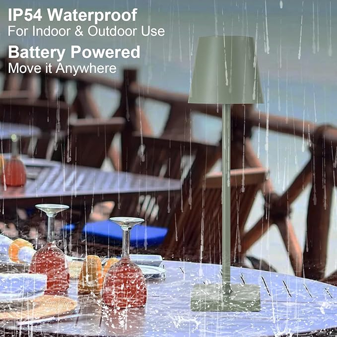 2 Pack Rechargeable Cordless Table Lamps, 5200mAh Battery Touch Table Light, Aluminum Shell Stepless Dimmable Portable LED Desk Lamp for Dinner/Restaurant/Outdoor Green