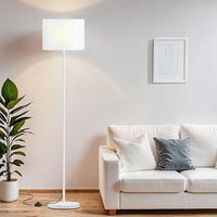 Ambimall 60'' Modern Floor Lamp with Shade, Tall Lamps for Living Room, Bedroom, Office, Dining Room, White Shade with White Pole(Without Bulb)