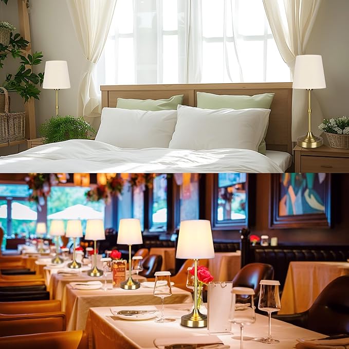 Rechargeable Battery Powered Table Lamp, Wireless LED Lamps, Cordless Touch Lamps, Stepless Dimmable Bedside Lamps, Night Lamp for Bedroom, Dinning Room, Kitchen Decor, Office (Bronze)
