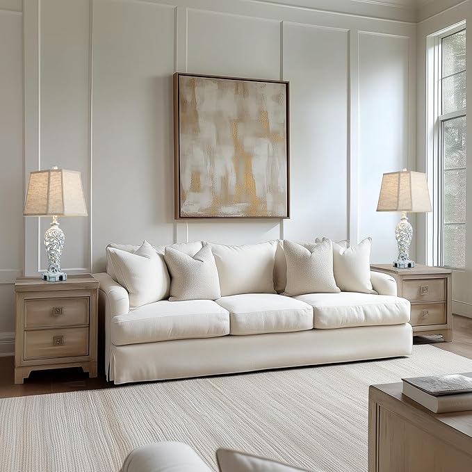 25'' Farmhouse Table Lamps Set of 2 for Living Room Bedroom, 2 USB Ports Rustic Vintage Nightstand Table Lamp with Nightlight, Hollow Out Resin Lamp for End Table (Bulbs Included)