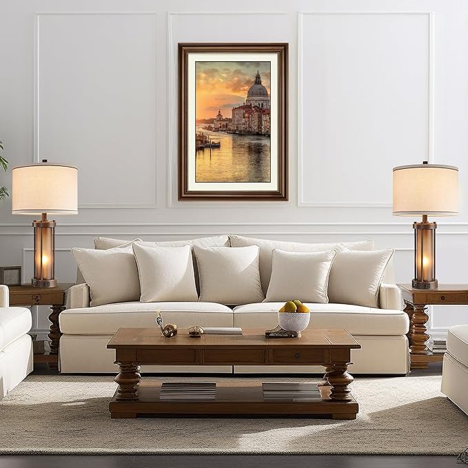 Set of 2 Farmhouse Table Lamps for Living Room with 2 USB Charging Ports, Vintage Rustic Nightstand Lamps with Amber Glass Nightlight, Retro Desk Lamps for Bedroom Entryway, 4 Bulbs Included (Brown)