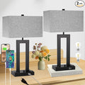 Table Lamps Set of 2 with 2 USB Ports and AC Power Outlet, Modern Bedside Lamp, Wood Nightstand Lamp with Linen Shade for Living Room Bedroom End Table Hotel Desk(LED Bulb Included)