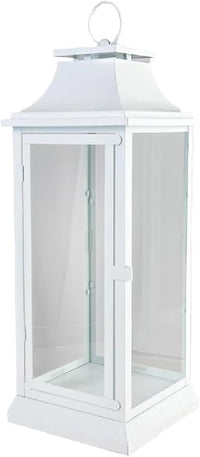 Serene Spaces Living Hurricane Lanterns with Clear Glass Panels, Perfect for Home Decor, Parties & Events, Table Top Or Hanging Lantern for Indoor & Outdoor (Medium - White)