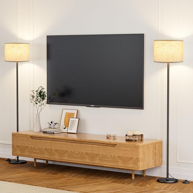 Ambimall 60'' Modern Floor Lamp Set of 2, 2PK Tall Lamps for Living Room Bedroom, Beige Shade with Black Pole(Without Bulb)