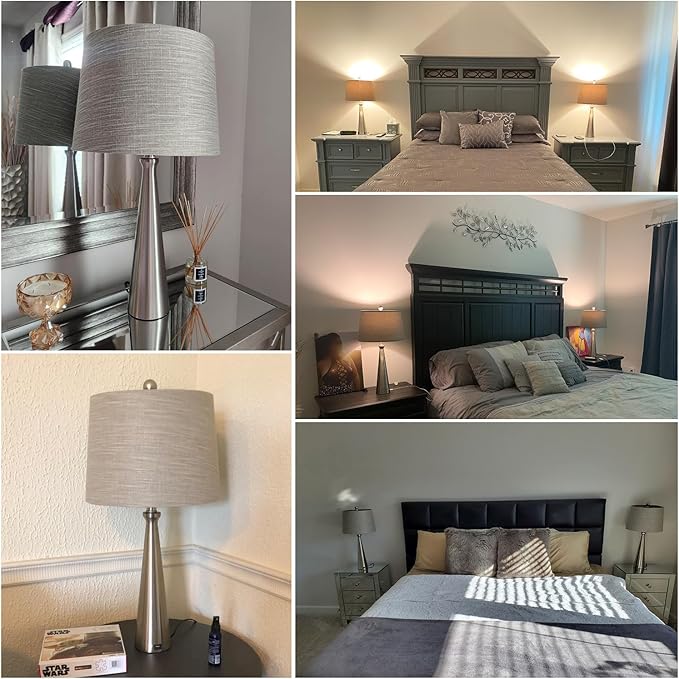 Oneach 25.75" Modern Table Lamp Set of 2, Bedside Lamps with USB Ports, Silver Nightstand Lamps Set for Living Room Bedroom House Bedside Home Office Family