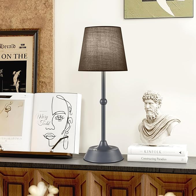 LED Cordless Table Lamp,Rechargeable 6000mA Battery Operated Portable Grey Desk Lamp,Dimmable Touch Control Table Lamp,for Restaurant/Patio/Outdoor.(LED Bulb Included)