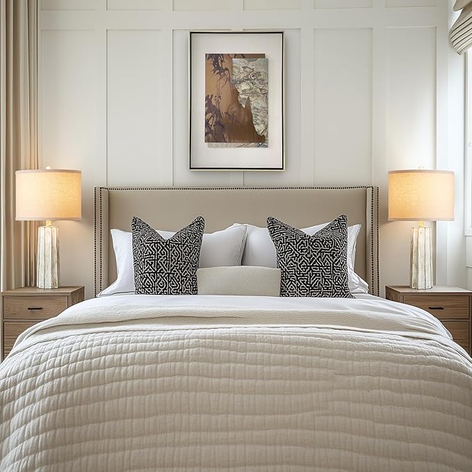 RORIANO 24'' Rustic Table Lamps Set of 2 for Bedroom Living Room, Wash White Farmhouse Vintage Desk Lamps Modern Resin Nightstand Lamps for Office Entryway End Table, 2 Bulbs Included (Wash White)