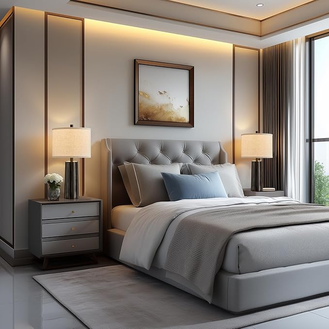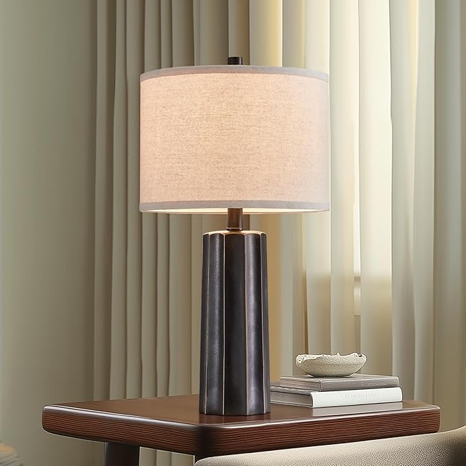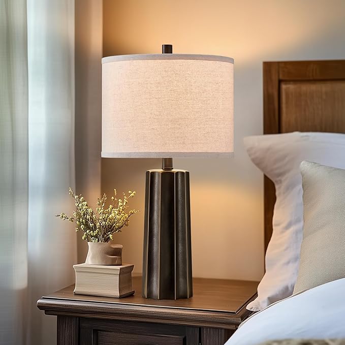 RORIANO Set of 2 Vintage Table Lamps for Bedroom Living Room, 24'' Traditional Farmhouse Resin Desk Lamps Rustic Modern Nightstand Bedside Lamps for Home Office Entryway, 2 Bulbs Included (Black)