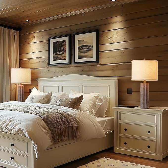 RORIANO 24'' Farmhouse Resin Table Lamps Set of 2 for Bedroom Living Room Vintage Traditional Desk Lamps Rustic Nightstand Bedside Lamps for Office Entryway, 2 Bulbs Included (Earth Brown)