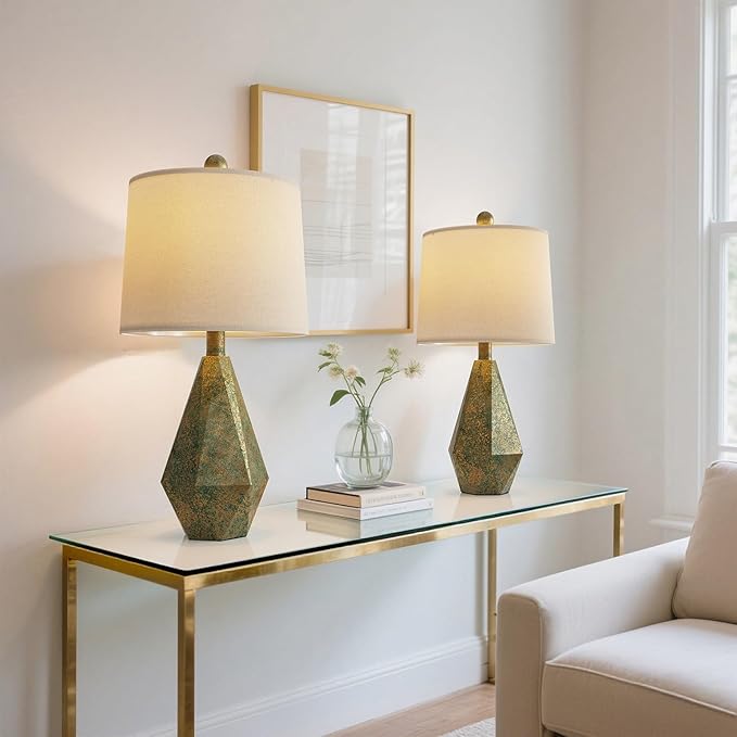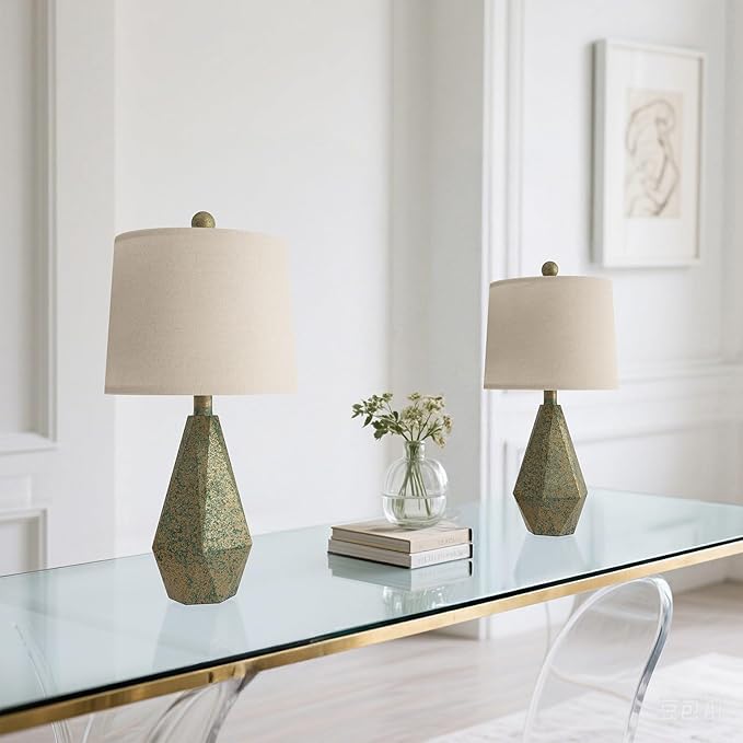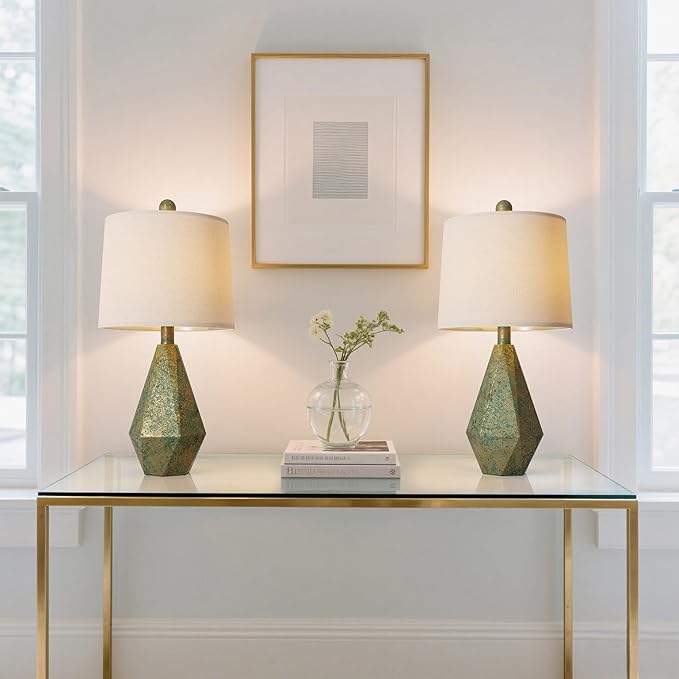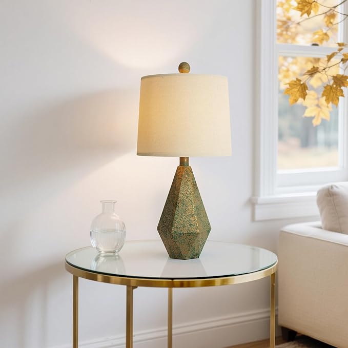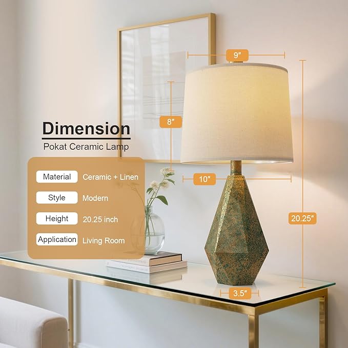 PoKat 20.25" Vintage Table Lamps Set of 2 for Night Stands, Modern Bedside Lamps for Bedroom Living Room, Farmhouse Bedroom Lamps for End Table, Suitable for Small Place, Retro Blue and Green