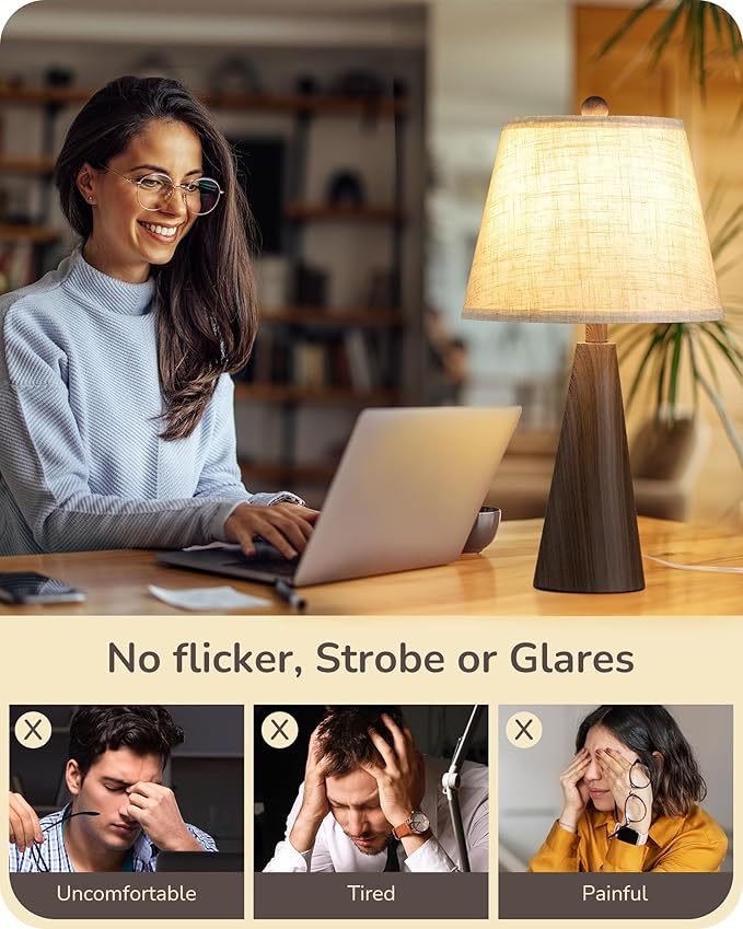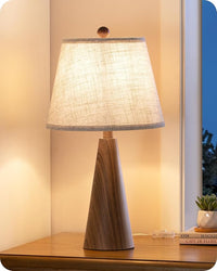 EDISHINE 21.85" Farmhouse Table Lamp, Rustic Bedside Lamp, Water Transfer Walnut Wood Grain Metal Base, Beige Linen Shade, Minimalist Nightstand Light for Living Room, Bedroom, Office, E26 Base