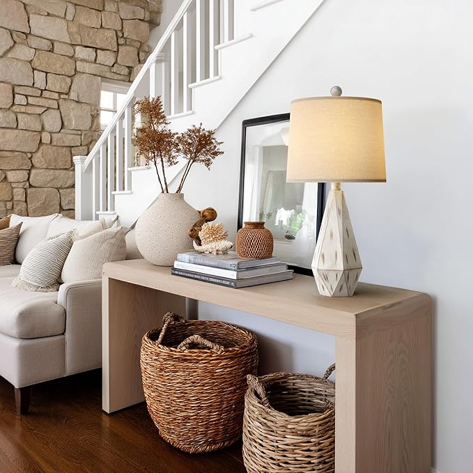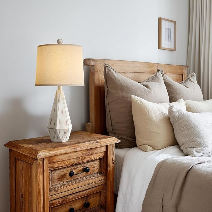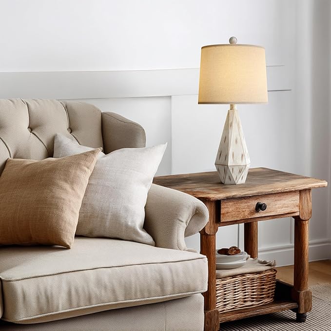 PoKat 23'' Farmhouse Table Lamps Set of 2, Beige Rustic Lamps for Living Bedroom Night Stands, Bedside Nightstands Living Room Table Lamps for End Side Table, Beige and White