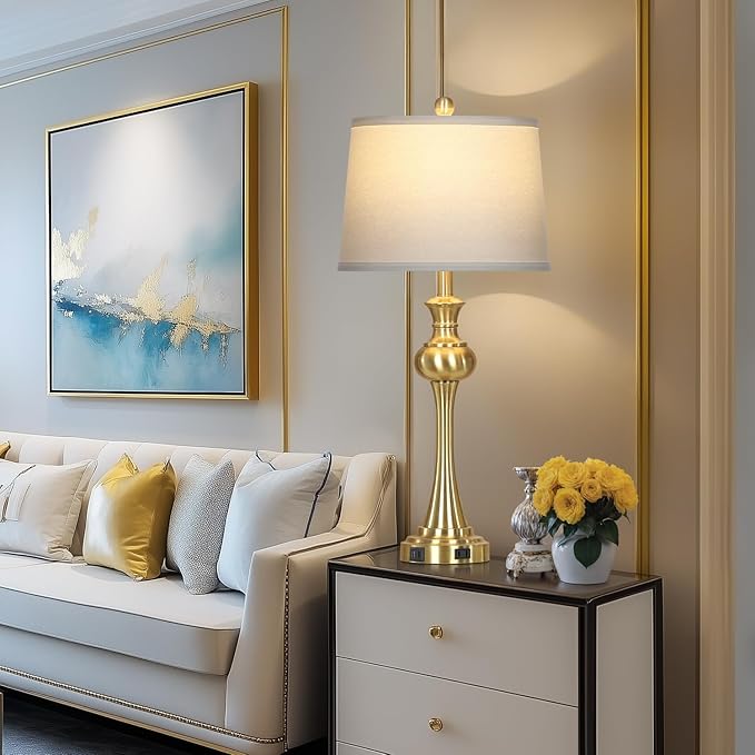 28.75" Gold Table Lamps Modern 3-Way Touch Control Dimmable Bedside Lamp with USB A+C Ports & AC Outlets for Living Room Bedroom Nightstand Lamp (Bulb Included)