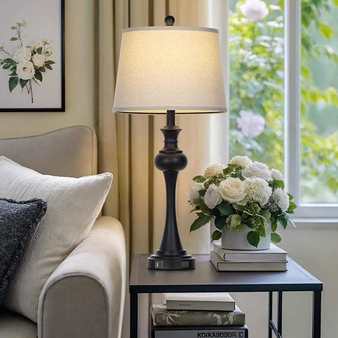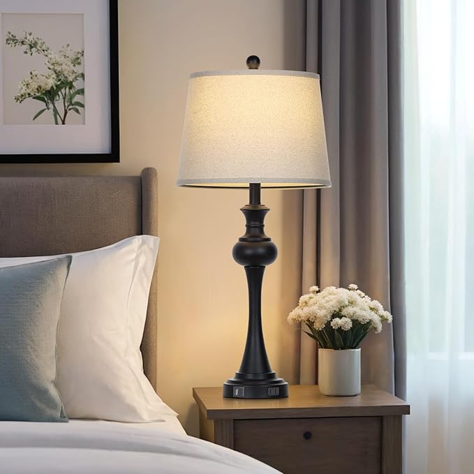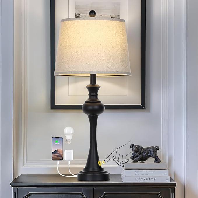 28.75" Black Modern Table Lamps for Living Room, Bedside Lamp with USB A+C Ports & AC Outlets, 3 Way Dimmable Touch Lamps for Living Room,Nightstand Lamp LED Bulb Included (1Pack