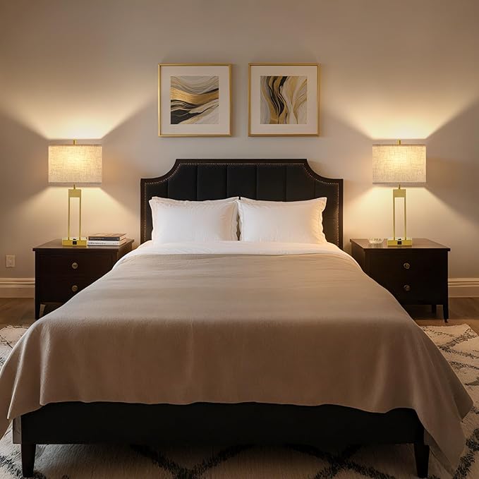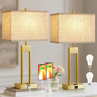 25.5" Nightstand Table Lamps for Bedrooms Set of 2, Bedside Lamp with USB C+A, 3 Colors Changeable Living Room Lamp, Modern Night Stand Lamps for Bed Side Guest Room Reading, Gold