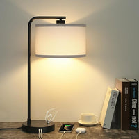 Table Lamp for Bedroom with USB C+A Ports, Fully Stepless Dimmable Farmhouse Bedside Lamp Nightstand Light, Tall Reading Desk Lamp for Living Room, Office, 9W LED Bulb Included