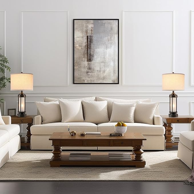 Set of 2 Modern Table Lamps for Living Room Bedroom, 25'' Black Retro Industrial Metal Lamp with Glass Nightlight, Contemporary Desk Lamp for Bedside End Table Office, 4 Bulbs Included