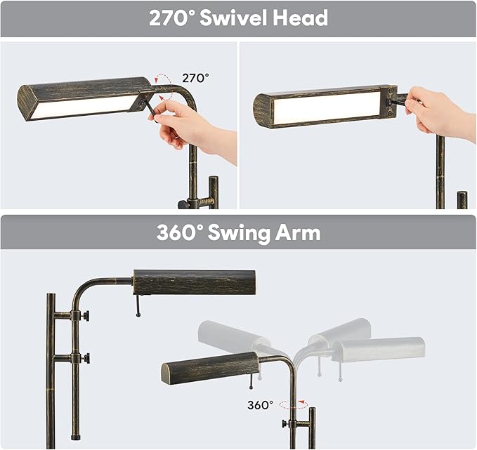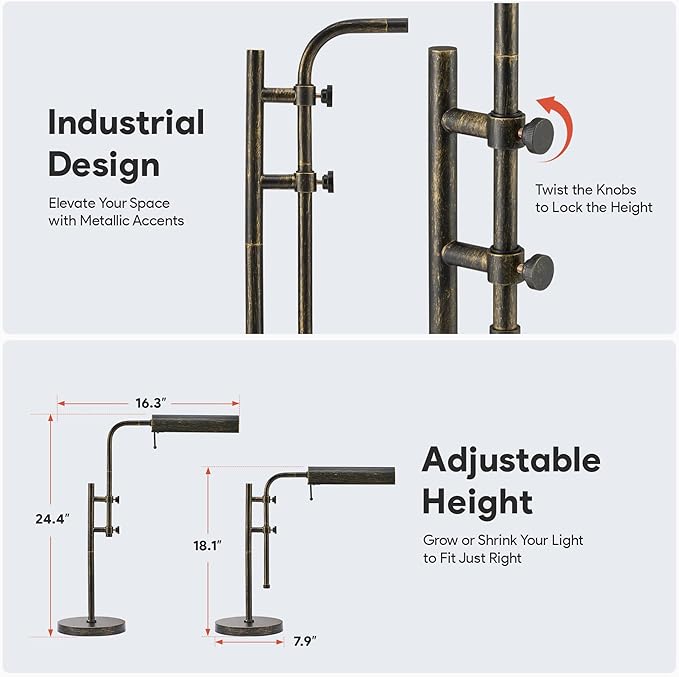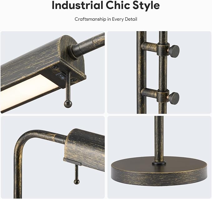 VONLUCE Rustic Desk Lamp, Adjustable Industrial Style Metal Table Lamp, 3 Color Temperatures LED Reading Lamp for Living Room Bedroom Office, Antique Black