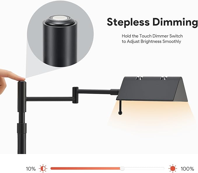 VONLUCE LED Desk Lamp, Adjustable Industrial Style Metal Table Lamp, Dimmable Reading Lamp for Living Room Bedroom Office, Black