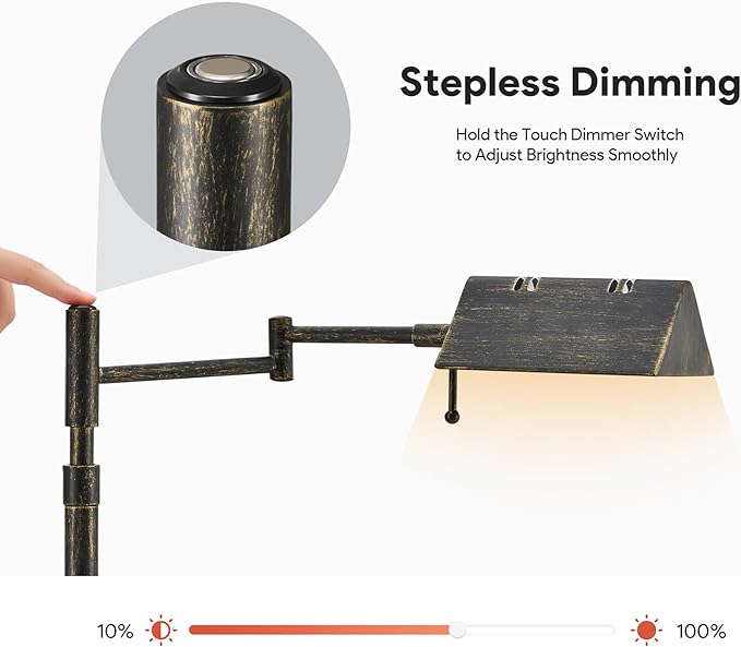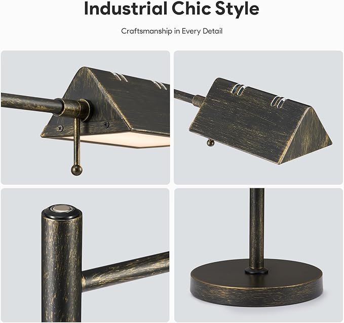 VONLUCE LED Desk Lamp, Adjustable Industrial Style Metal Table Lamp, Dimmable Reading Lamp for Living Room Bedroom Office, Antique Black