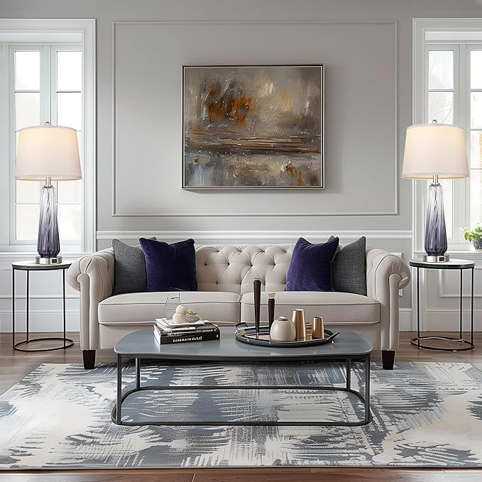 Glass Table Lamps for Living Room, Modern Bedside Lamps with USB A+C Ports, 3-Way Dimmable Touch Control Nightstand Lamp with White Linen Shade, 27.5" Large Lamps for Bedrooms Decor, Grey, 1 Pack