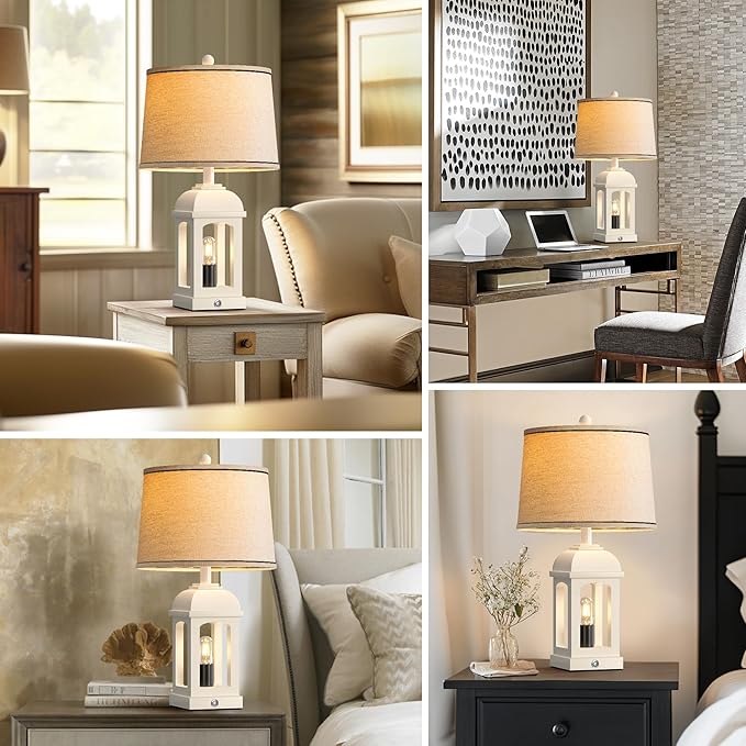 QiMH Table Lamp for Living Room, Farmhouse Lamps with USB A+C and Nightlight, 26" Rustic Bedside Lamps with 3-Way Dimmable Touch Control, Nightstand Lamp for Bedroom, White, 1 Pack
