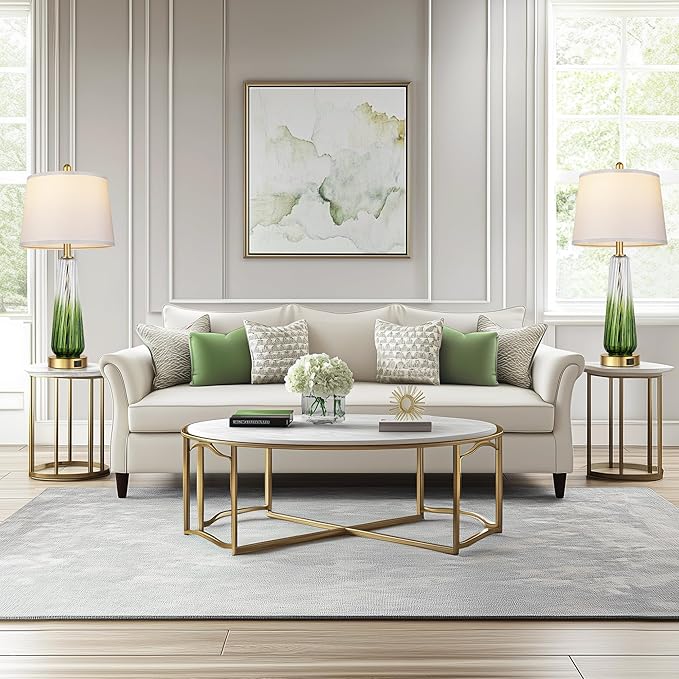 Glass Table Lamps for Living Room, Modern Bedside Lamps with USB A+C Ports, 3-Way Dimmable Touch Control Nightstand Lamp with White Linen Shade, 27.5" Large Lamps for Bedrooms Decor, Green, 1 Pack