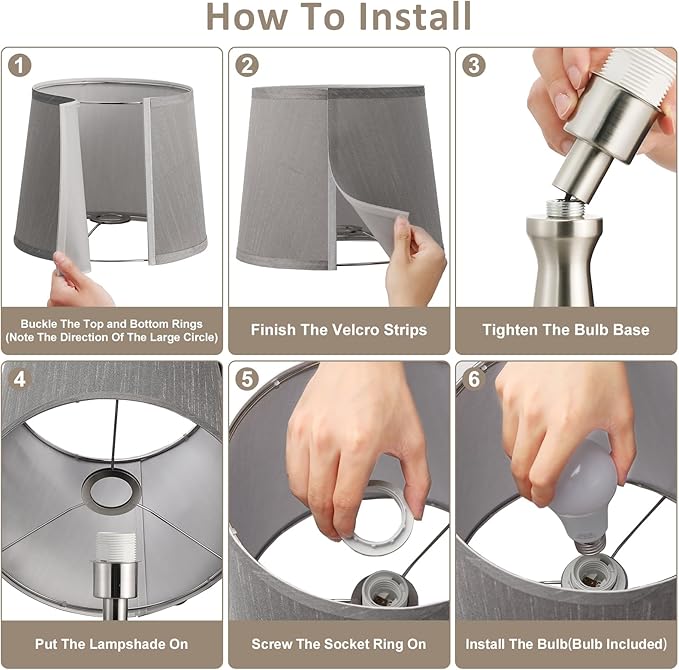 Seealle Modern Table Lamps Set of 2 - Touch Bedside Lamp for Nightstand with USB C+A,3-Way Dimmable Silver Nightstand Lamps for Living Room Bedroom End Table with Grey Shade(Bulb Included)