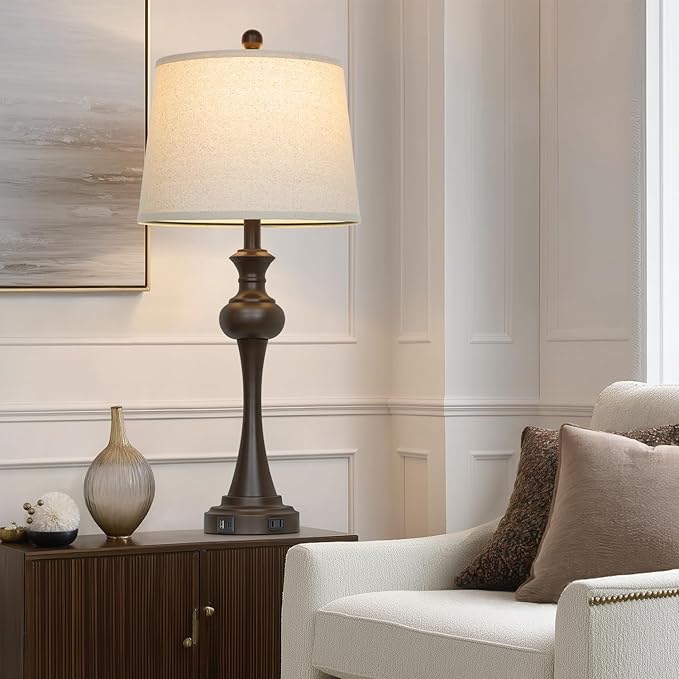 Touch Table Lamps Set of 2, 28.75" Tall Bedside Lamps with USB C+A Ports, 3-Way Dimmable Table Lamp, Nightstand lamps for Bedroom, Living Room, Office, Brown Lamps with Beige Lampshade, Bulbs Included