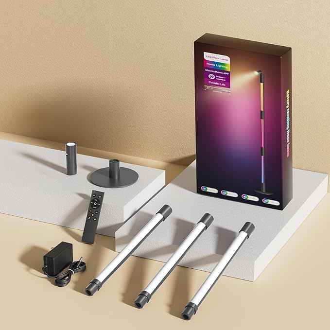 RGBWIC LED Corner Floor Lamp – Smart Ambient Light with Bluetooth App & Remote Control, Music Sync, Color Changing, Mood Lighting for Bedroom, Living Room, Gaming Setup, Home Decor (2pack Grey)