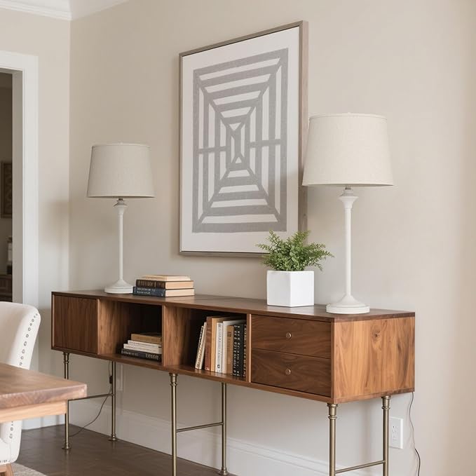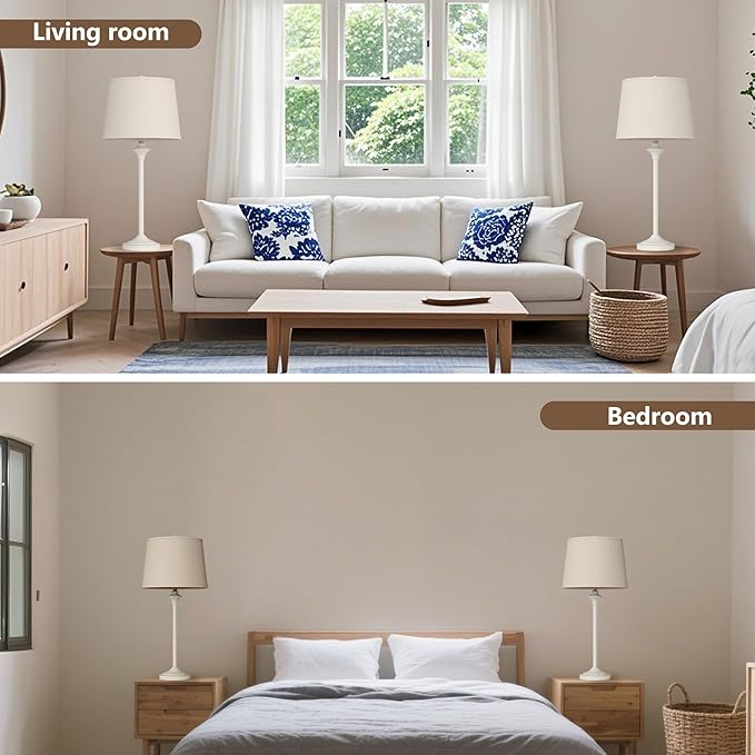 Maxax Farmhouse Table Lamps Set of 2 for Living Room, Antique White Metal Buffet Lamps with Oatmeal Shade Decor, 26" Tall Skinny Bedside Nightstand Lamps for Bedroom