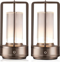 Portable Metal Table Lamp, Cordless Table Lamp, Rechargeable Battery Powered Portable LED Desk Lamp, 3 Color Stepless Dimming Touch, for Bedroom Restaurant Home Outdoor (2 Set of Silver)