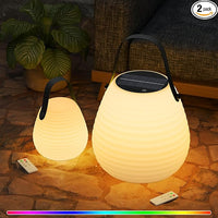 uuffoo 2-Pack Solar Table Lamp Outdoor Water-Resistant Portable Lantern with Remote and 8 Colors, Dimmable Cordless Lamp for Outside Garden Patio Camping Terrace
